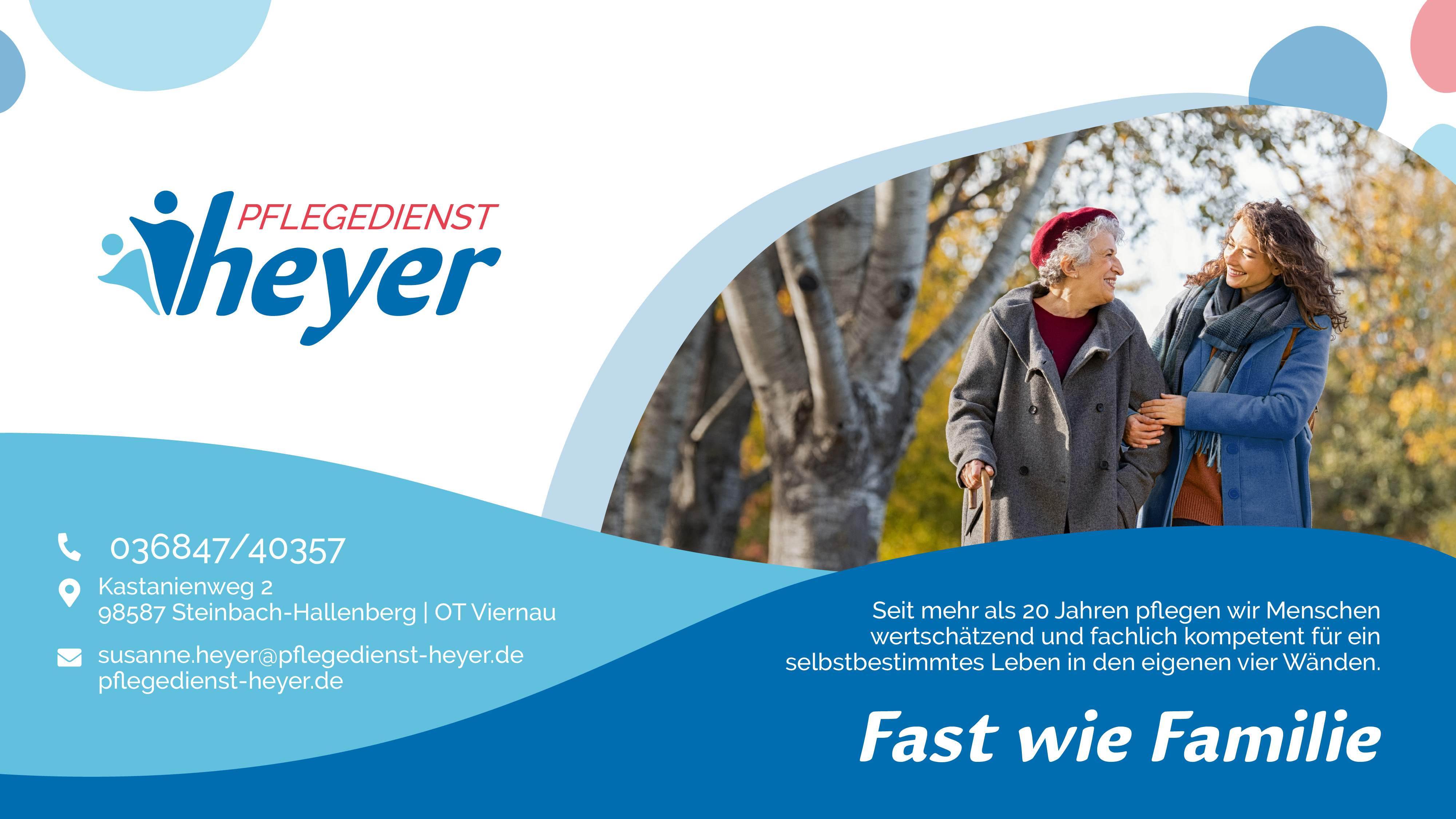 „Fast wie Familie“ - Neuer Look und digitale Präsenz für den Pflegedienst aus Viernau Dieser besteht seit über 20 Jahren. Pflege, Beratung und Betreuung mit Qualität und kompetentem Fachpersonal stehen hierbei im Fokus. Darauf basiert der sehr persönliche und familiäre Umgang mit Kunden in deren eigenen vier Wänden.