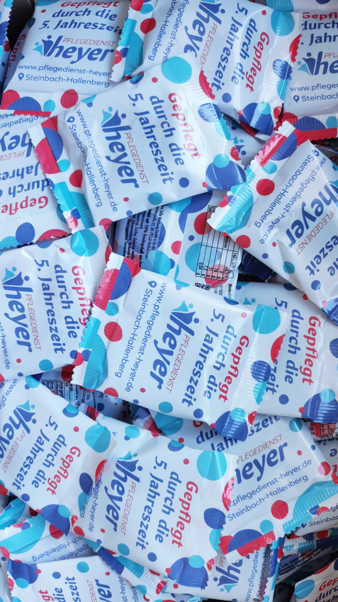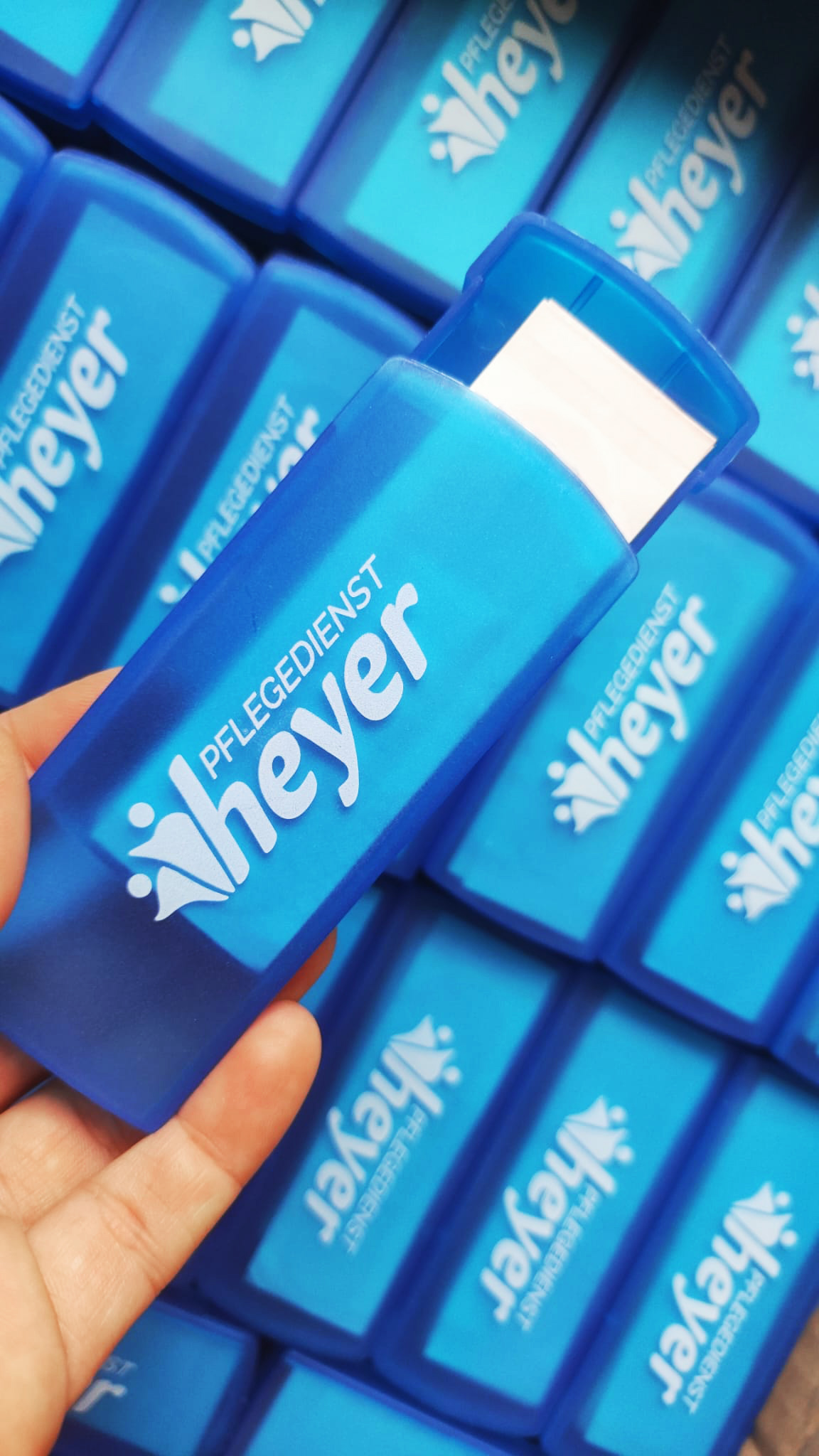 Als kleine Goodies für Messetermine und sonstige öffentliche Werbemaßnahmen haben wir Werbemittel, vorrangig mit Verbindung zum Thema Pflege, ausgewählt und gebrandet.