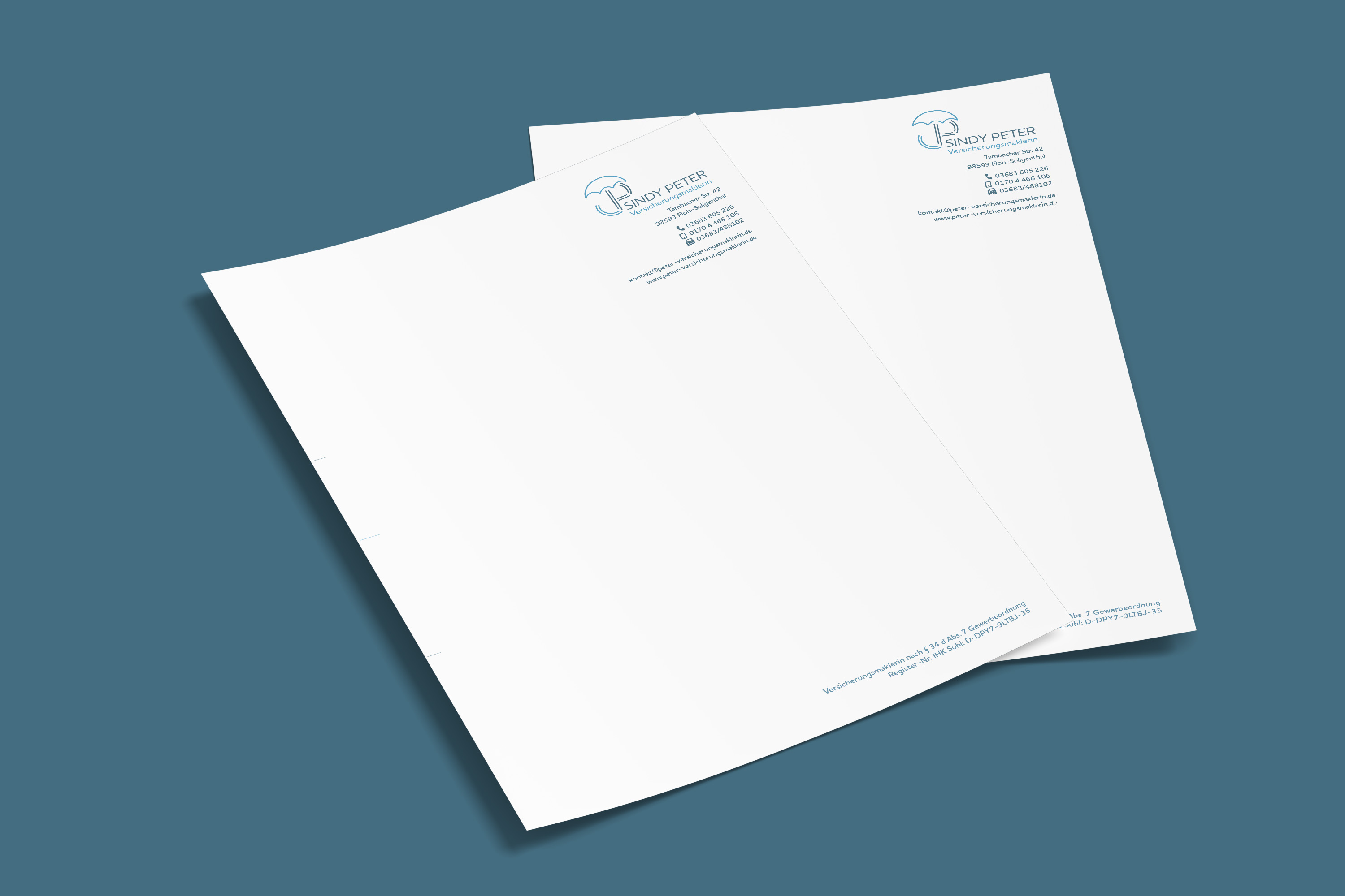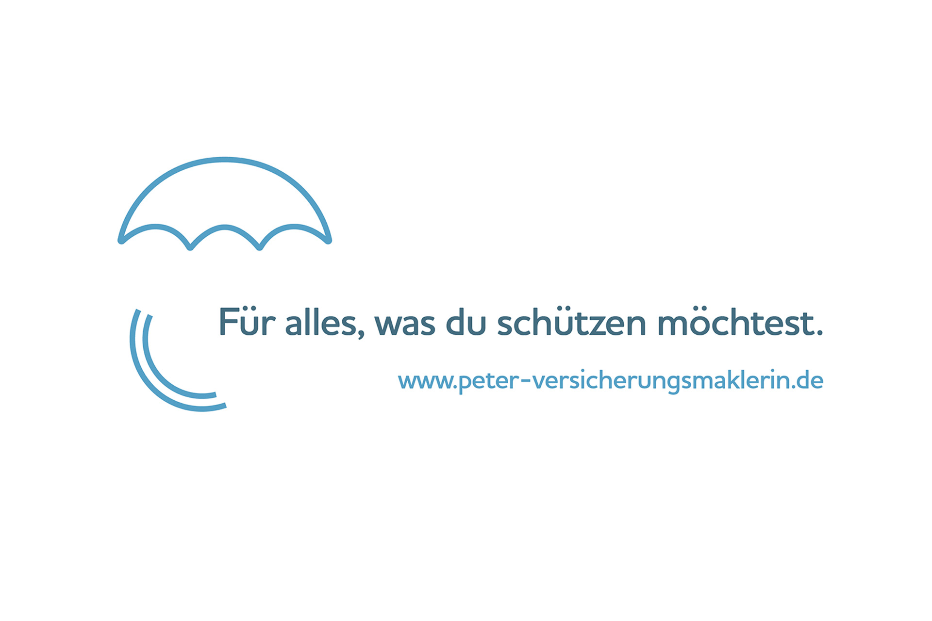 Anstatt eines traditionell wirkenden Logos setzen wir deshalb auf die symbolische Wirkung eines Regenschirm-Icons. Es visualisiert das Hilfsangebot der Maklerin: niemand wird im Regen stehen gelassen. Blau als Farbe unterstreicht den ehrlichen und seriösen Charakter der Branche und ist zeitlos. Hilfe und Sicherheit stehen im Fokus.