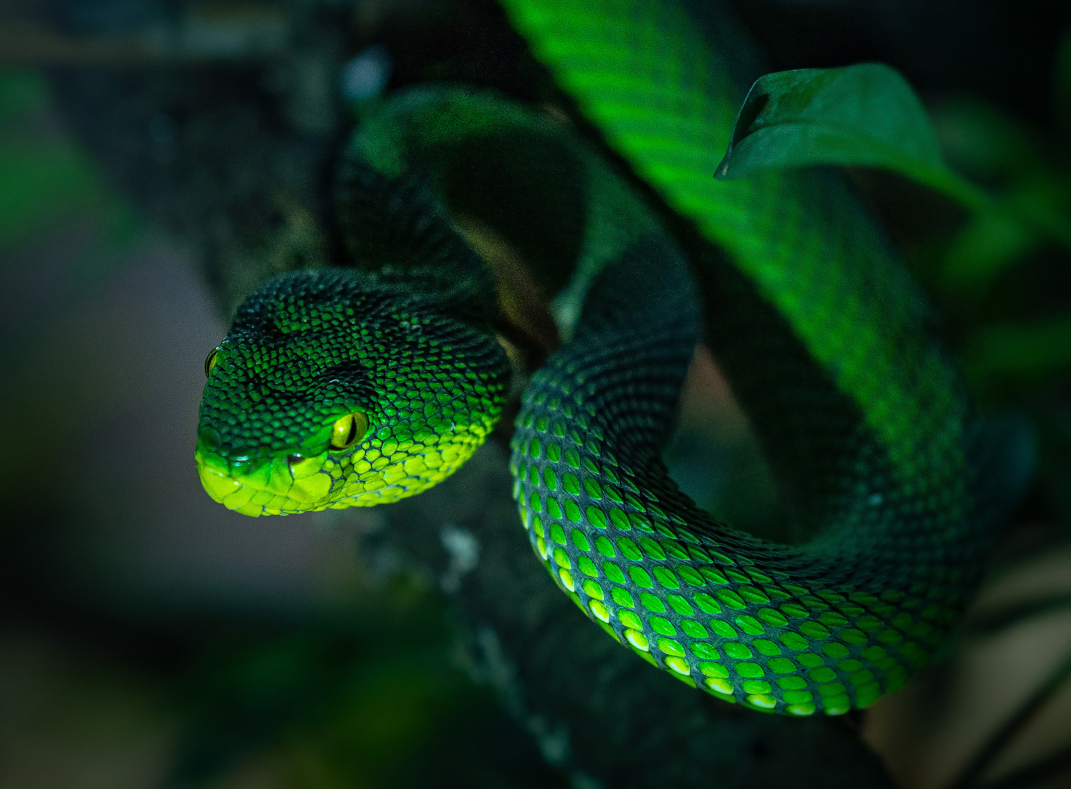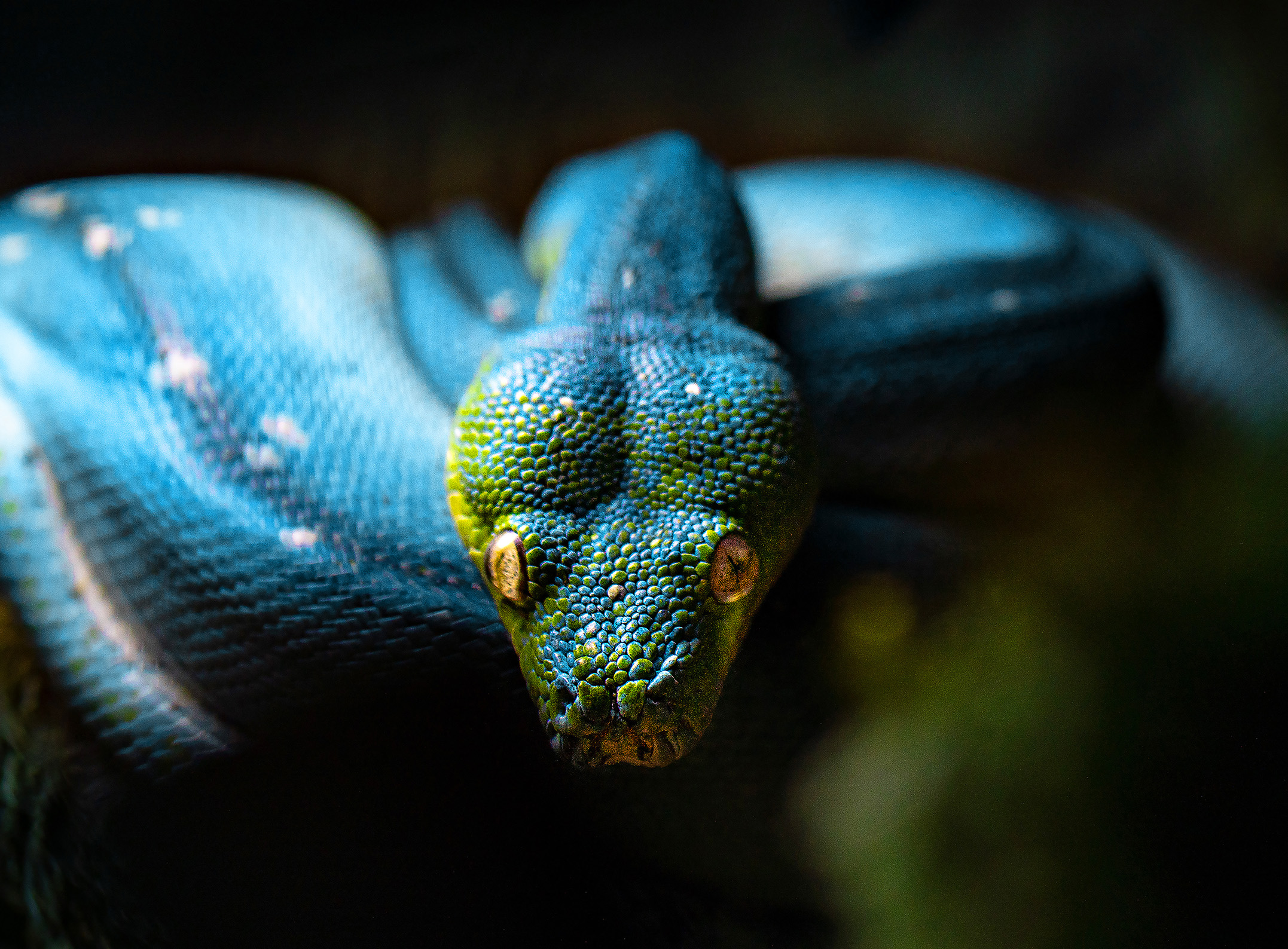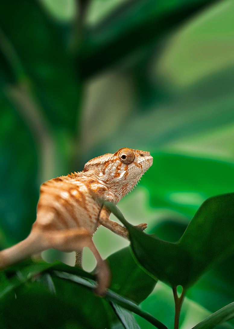 Ein Großteil der Prints wurde von uns fotografiert. Ein Shooting mit Tieren gestaltet sich immer wieder spannend, da sehr spontan auf die „Models“ reagiert werden muss. Die Schlangen wurden in ihren Terrarien fotografiert, um einen natürlichen Look mit Bepflanzung zu erhalten und Stress für die Tiere zu vermeiden. Die Lichtgestaltung war deshalb beschränkt, genau wie der Aufnahmewinkel und die Position der Fotografin, da die Glasscheibe der Behausung selbst nicht mit abgebildet werden sollte.