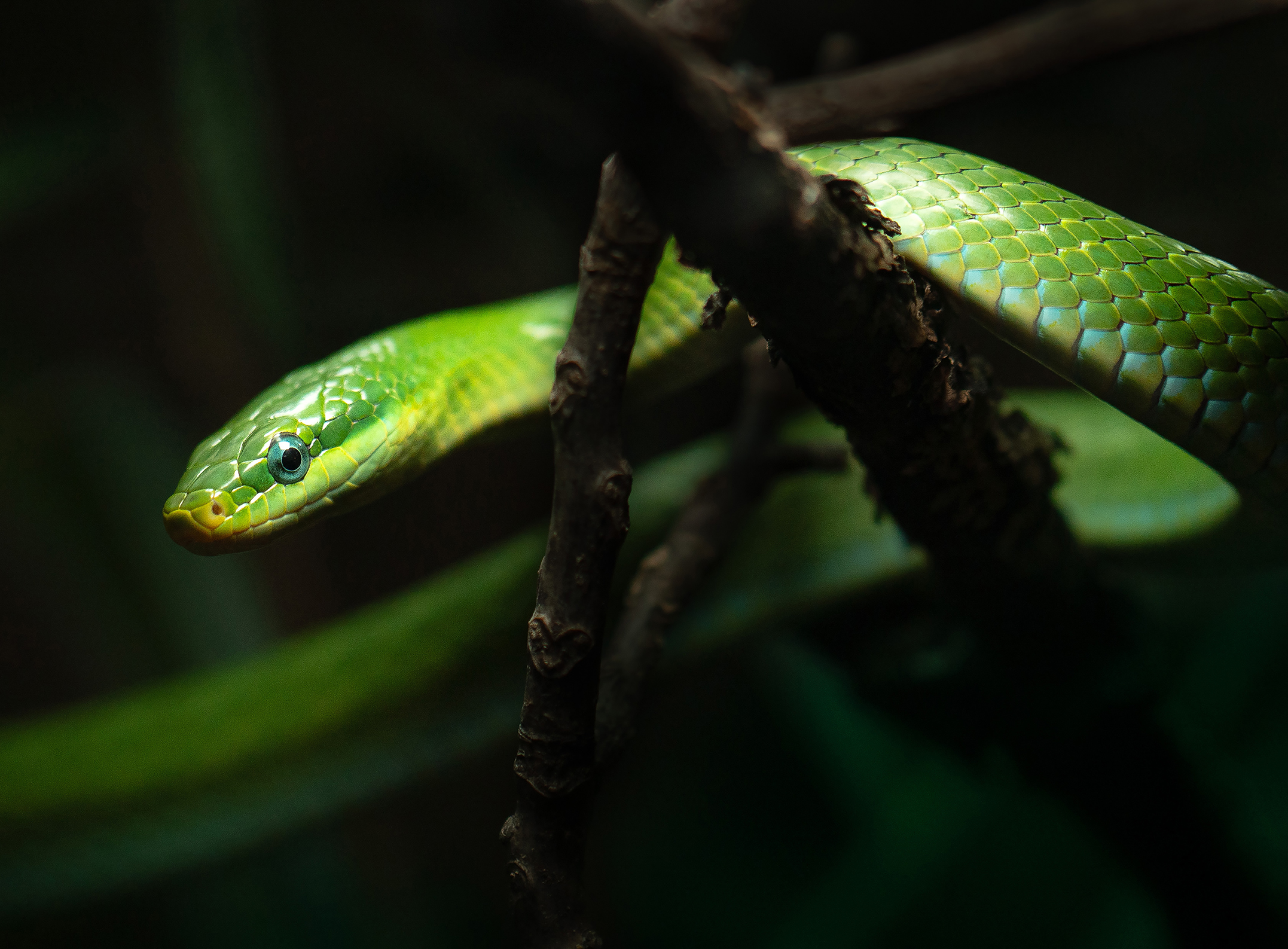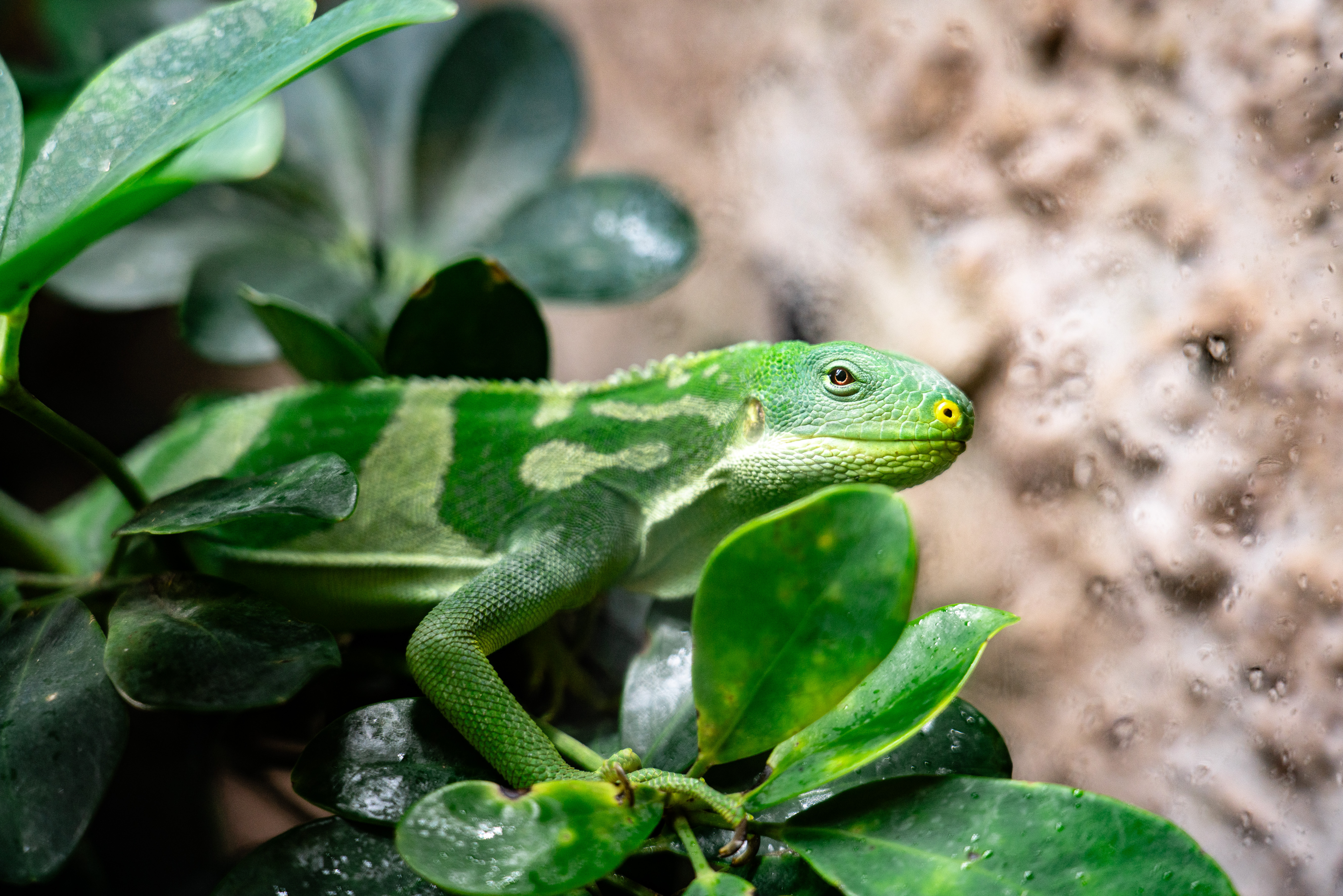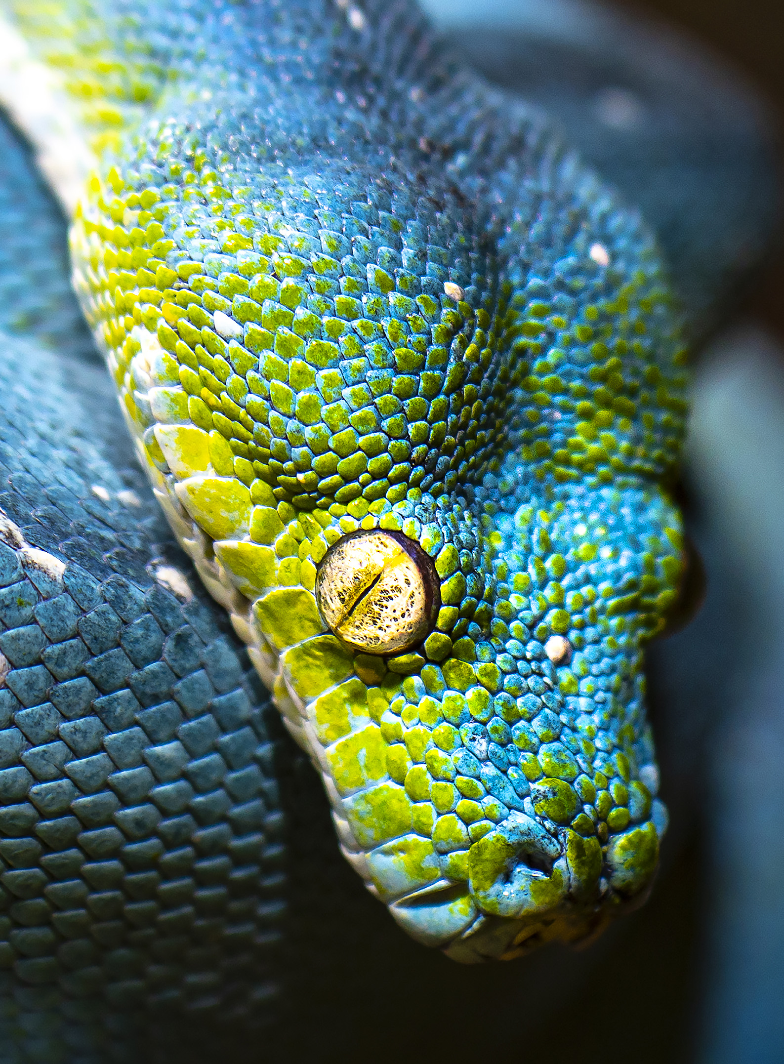 Ein Großteil der Prints wurde von uns fotografiert. Ein Shooting mit Tieren gestaltet sich immer wieder spannend, da sehr spontan auf die „Models“ reagiert werden muss. Die Schlangen wurden in ihren Terrarien fotografiert, um einen natürlichen Look mit Bepflanzung zu erhalten und Stress für die Tiere zu vermeiden. Die Lichtgestaltung war deshalb beschränkt, genau wie der Aufnahmewinkel und die Position der Fotografin, da die Glasscheibe der Behausung selbst nicht mit abgebildet werden sollte.