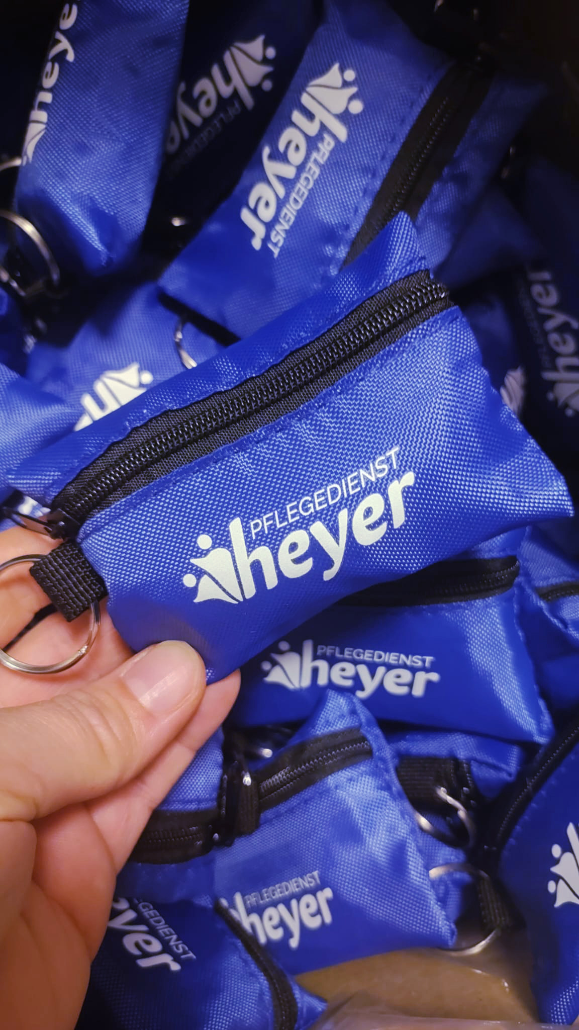 Als kleine Goodies für Messetermine und sonstige öffentliche Werbemaßnahmen haben wir Werbemittel, vorrangig mit Verbindung zum Thema Pflege, ausgewählt und gebrandet.