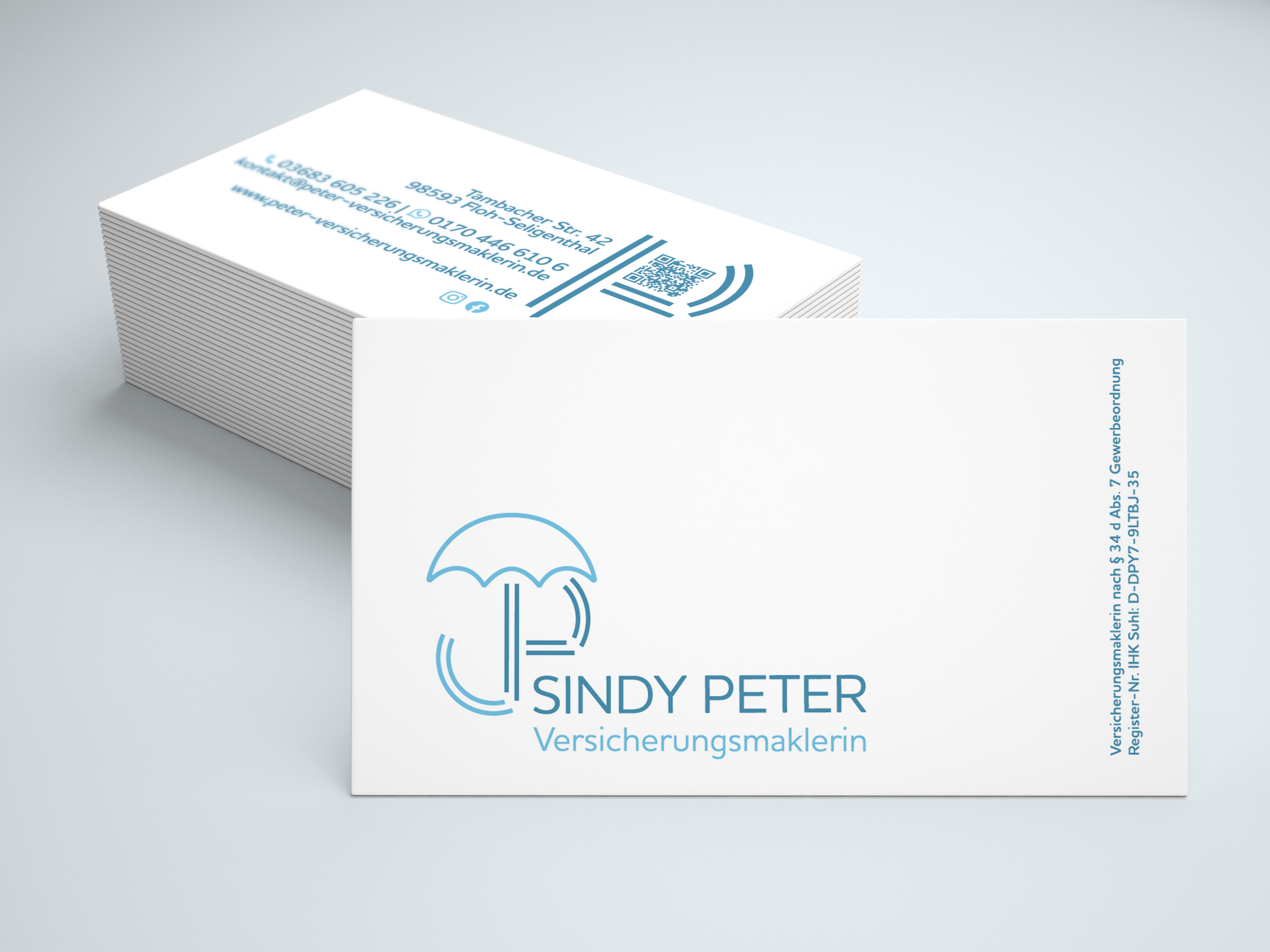 Anstatt eines traditionell wirkenden Logos setzen wir deshalb auf die symbolische Wirkung eines Regenschirm-Icons. Es visualisiert das Hilfsangebot der Maklerin: niemand wird im Regen stehen gelassen. Blau als Farbe unterstreicht den ehrlichen und seriösen Charakter der Branche und ist zeitlos. Hilfe und Sicherheit stehen im Fokus.